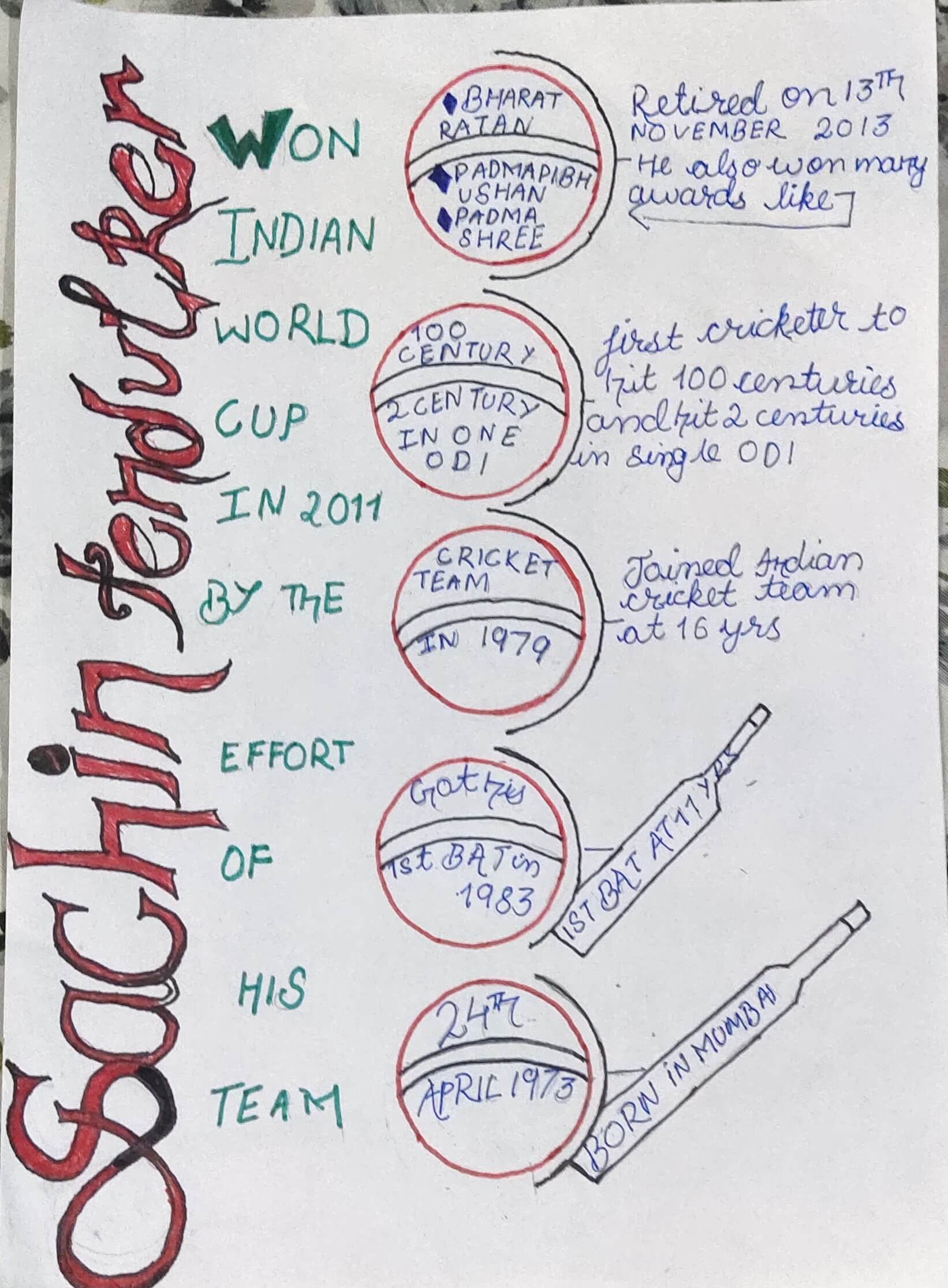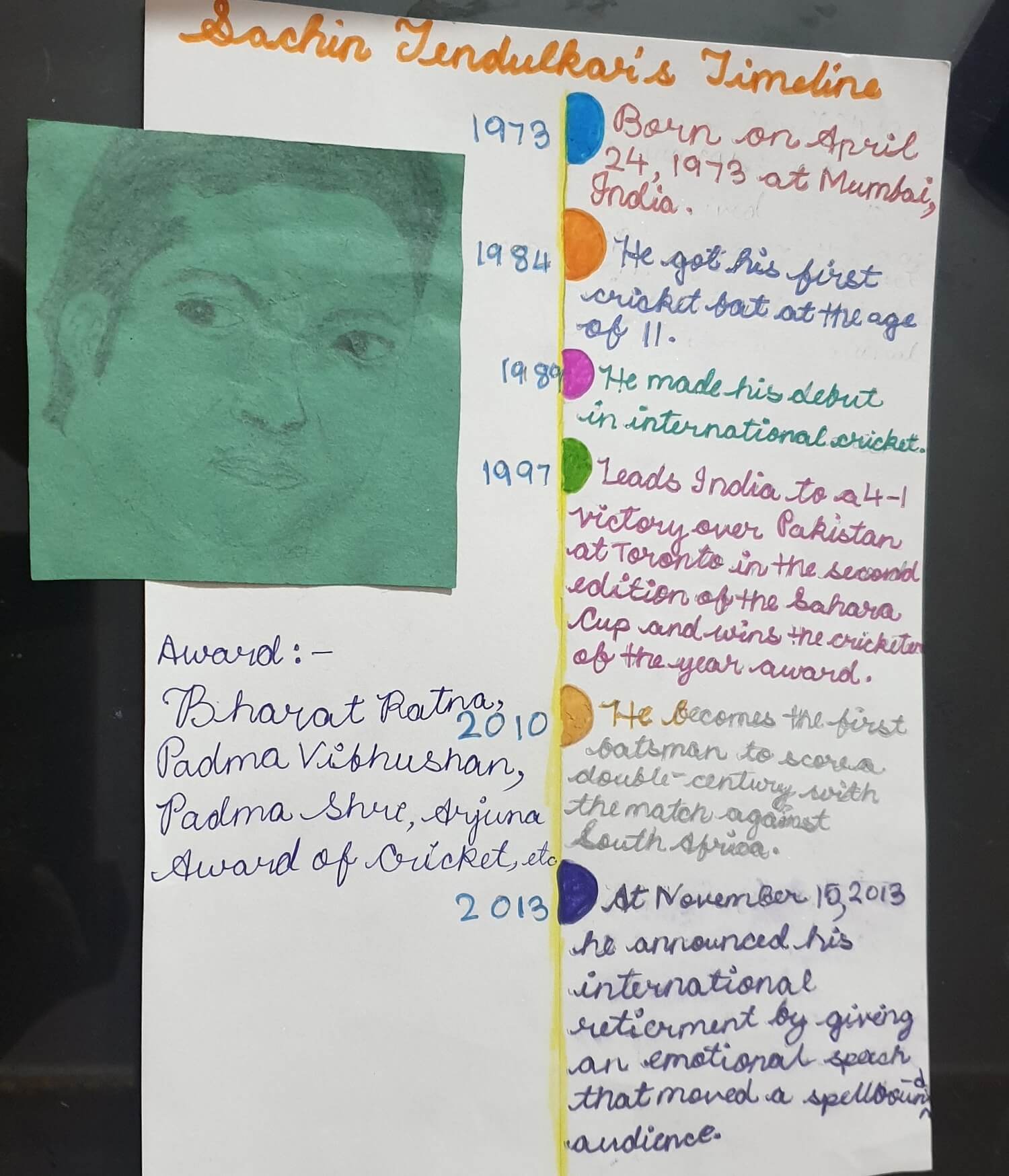 - Preparing A Timeline: The Students of Grade VII were introduced to the elements and importance of a timeline before they proceeded to read the text, ‘Sachin: Leaves India in Tears’, from their Multi-Skill Course Book. The students came up with wonderful pieces of work.