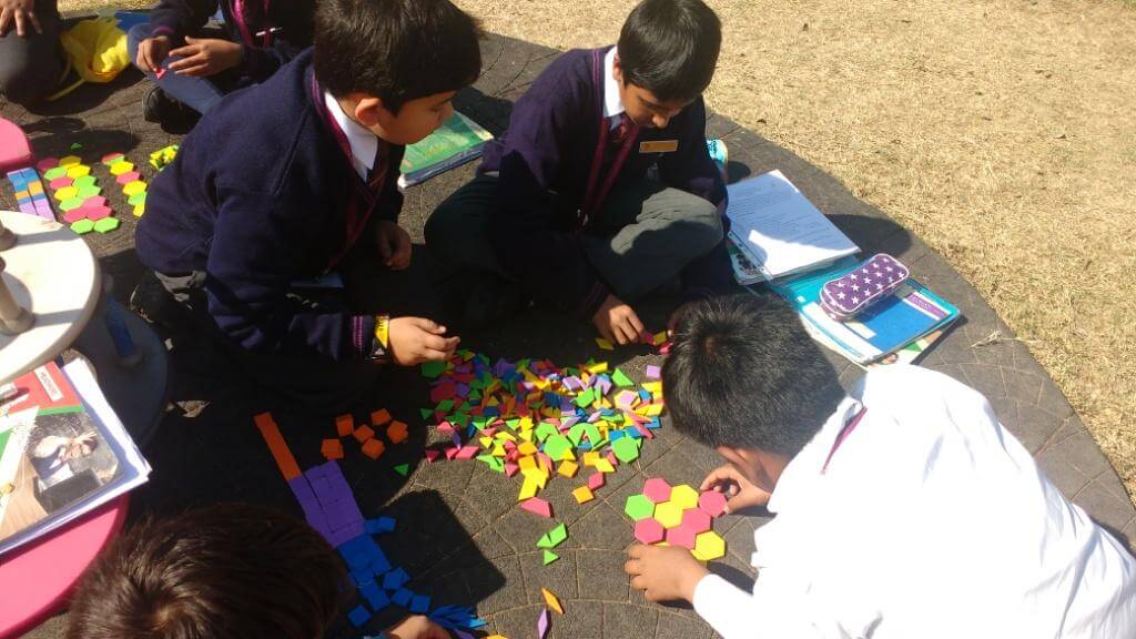 Identifying and organizing visual information is an important aspect of everyday life. Understanding shapes and patterns around helps kids to develop a wide range of skills like creativity and communication. Students of Grade 4 have been exploring the world of shapes, symmetry and patterns with lots of enthusiasm and fun.